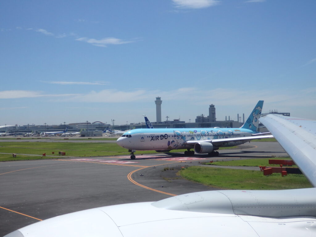 滑走路に向かう途中、AIRDOのロコンジェットに遭遇。新千歳からのお帰りですかね。