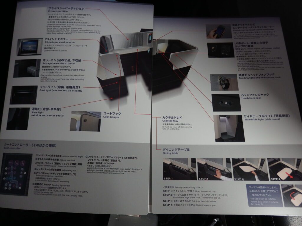 ちなみに、シートポケットには座席の説明があり、細かいところまで説明されていた。まあ読まなくても普通に色々な機能に気づくとは思うが、こういうのを読んでいると「え、そんなこともできたの?」と後からわかることもあるので、こういう説明書は読んでおくのに越したことはないと思う。