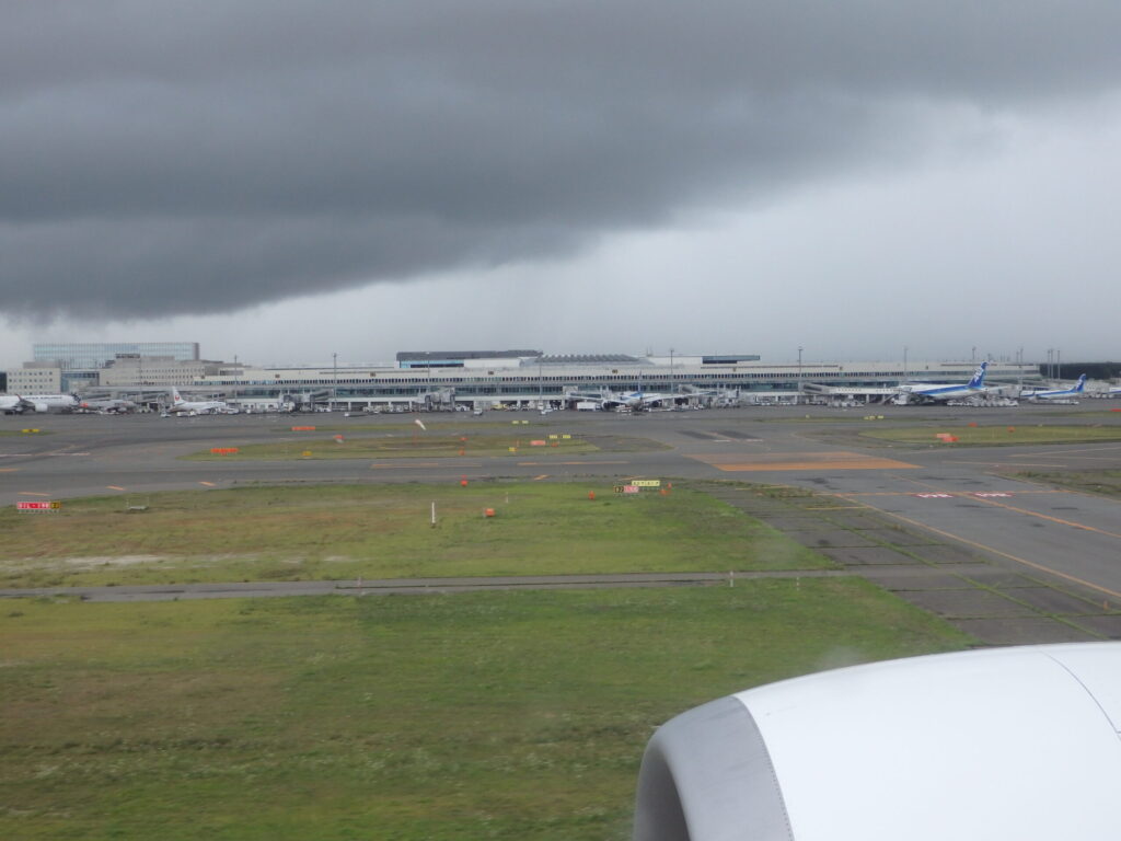 そして新千歳空港に到着。変な雲がある・・・そういえば、着陸時に雨が降っているエリアがあったのを思い出した。