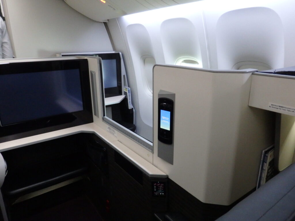 そういえば、B773に搭載されているビジネスクラスのブランドはSS7。SS7って、以前に国際線に乗った時にちらっと見たら赤色の座席だったような気がするのだが、変わったのかな・・・
