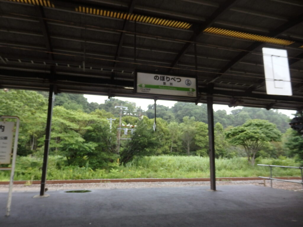 温泉とクマ牧場で有名な登別に到着。前回通過した時は真っ暗だったので気づかなかったが、緑に囲まれたホームは、海沿いの駅としては予想外だった。
