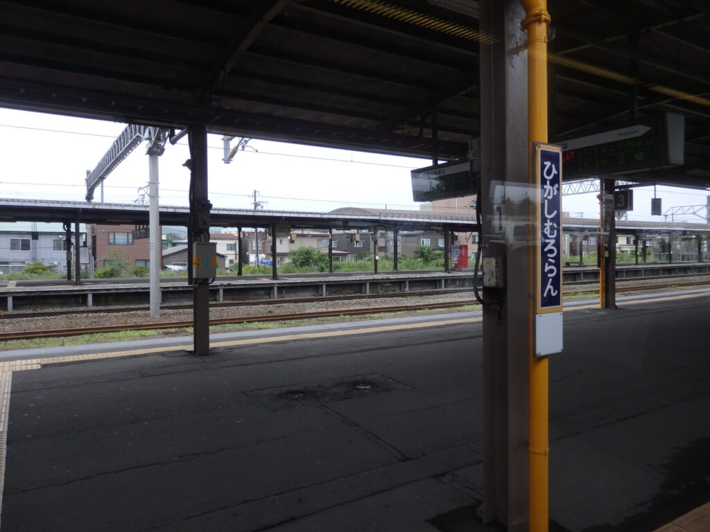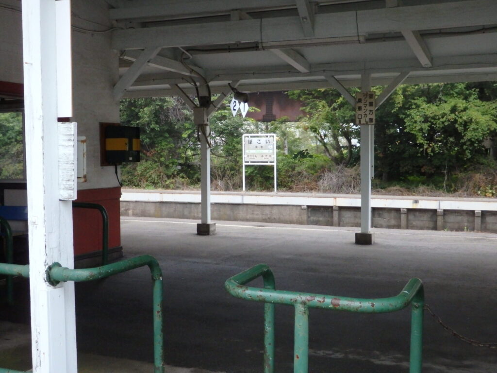 外からホームを覗いてみる。上下線の運用が完全に分離された相対式ホームとなっている。ちなみに、室蘭支線は全て複線なのだが、現在の走行本数からしたら過剰設備のようにも感じる。