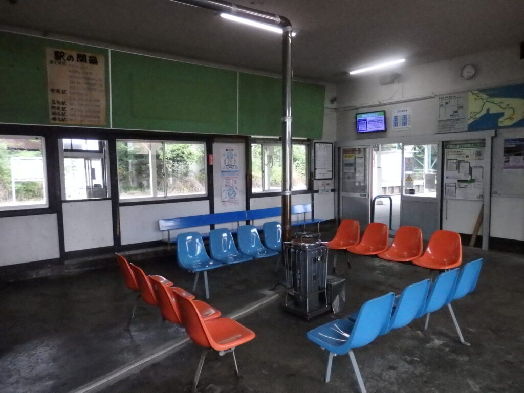 ちなみに駅舎内はこんな感じ。無人駅である。ストーブを取り囲んで暖を取れる構造になっているのが、寒い地方らしさを感じさせる。