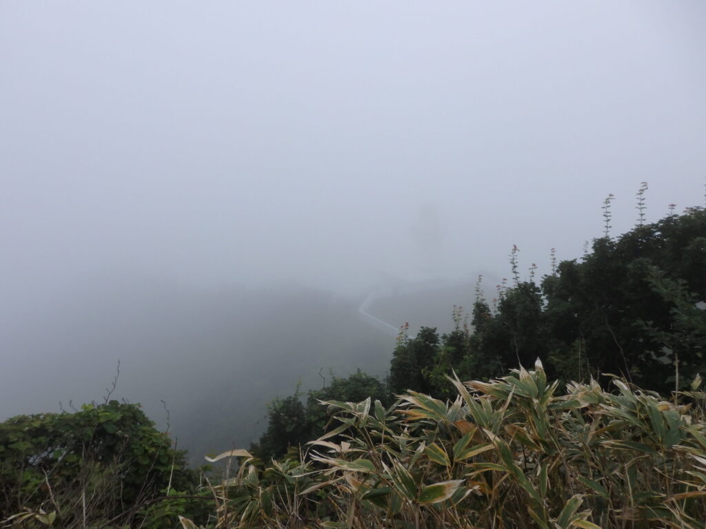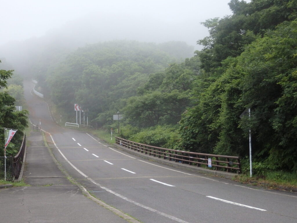 はい、肝心の景色はこんな感じだった。母恋駅を降りた時点で、丘の上がガスで視界悪い感じだったため、ある程度は覚悟していた。にしても、まさか10mぐらい先も見えないぐらいだとはね。