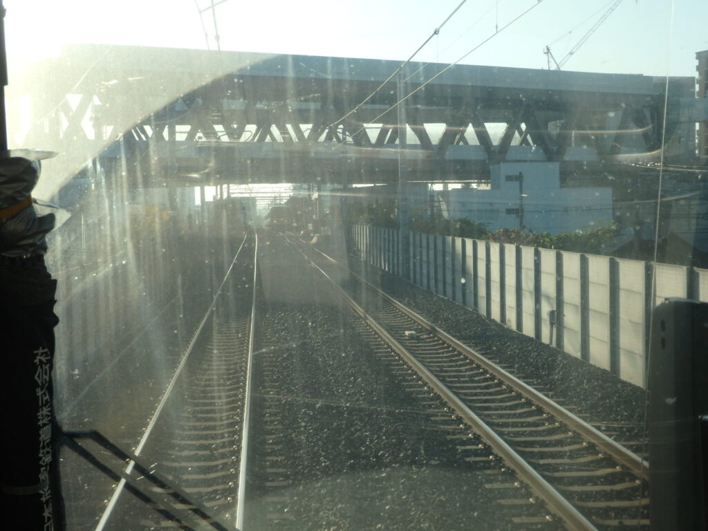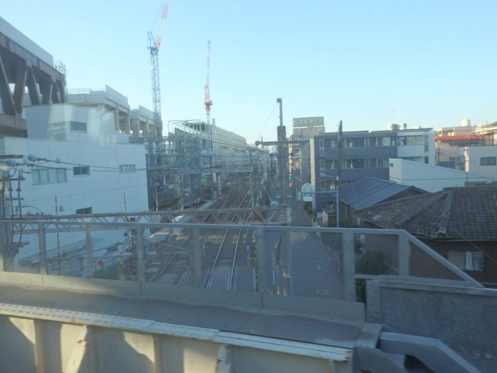 現在の阪急淡路駅方面を観察。徐々に高架が出来上がってきている。この風景を見た瞬間に、淡路駅を観察するのも魅力的に思い、降りようかかなり悩んだ。こういった、無くなる風景は見られるうちに見とかないと。