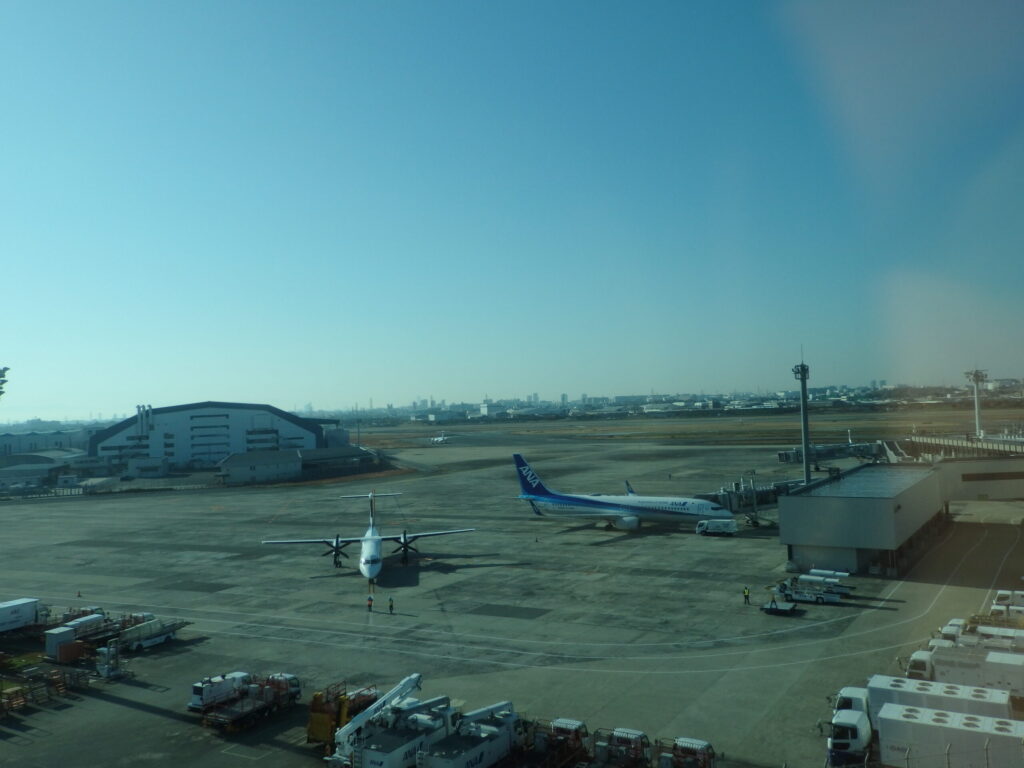 大阪空港駅に到着したら、急いで保安検査場に向かう。北はJAL系列、南はANA系列、今日はどちらでしょう・・・