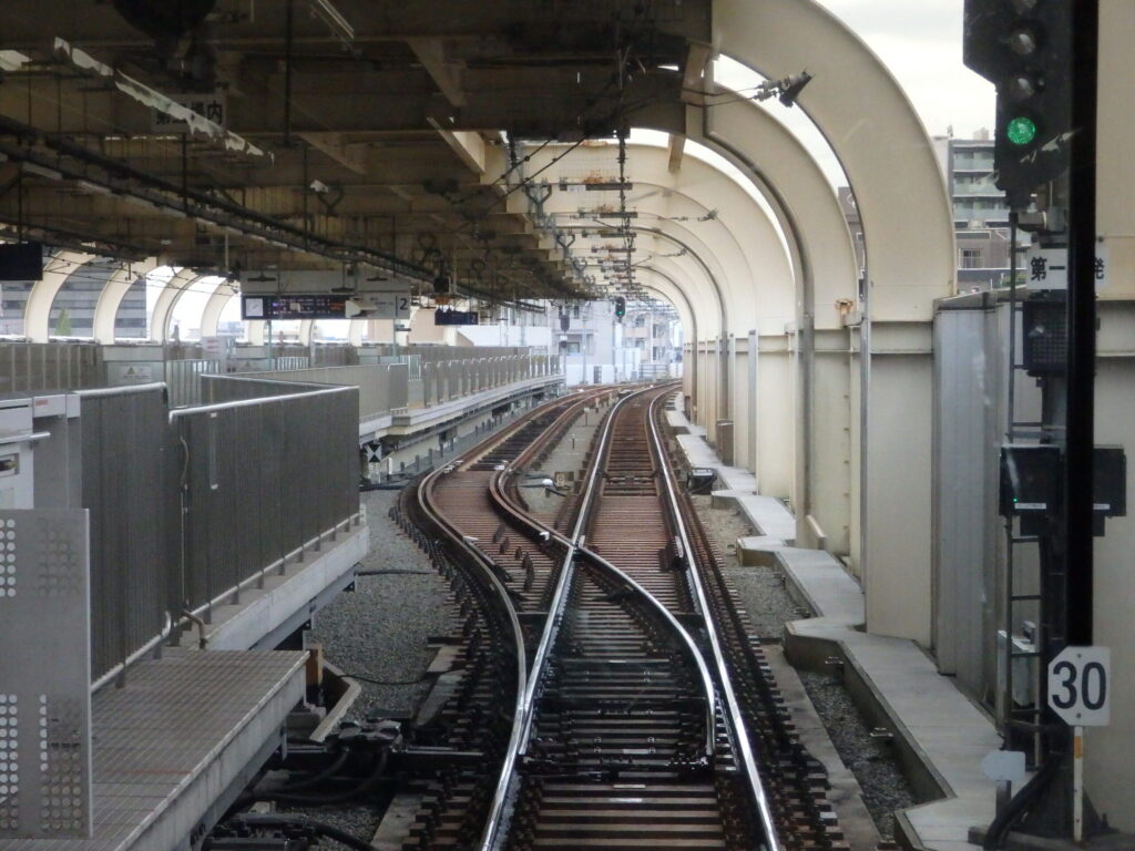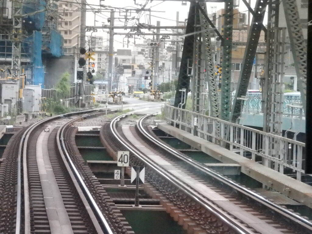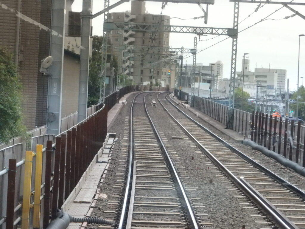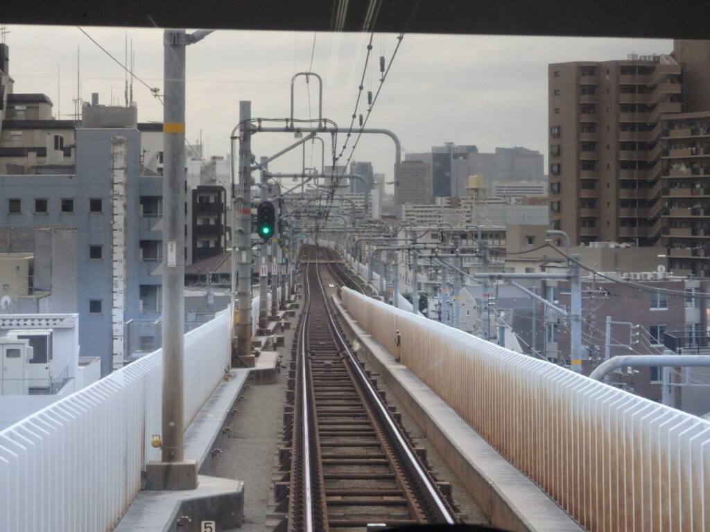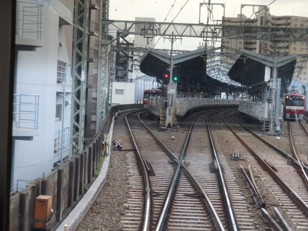 最初の通過駅である北品川駅を過ぎると、一気に高架に駆け上がる。ここら辺でカーブの続く区間が終わり、スピードが上がる。