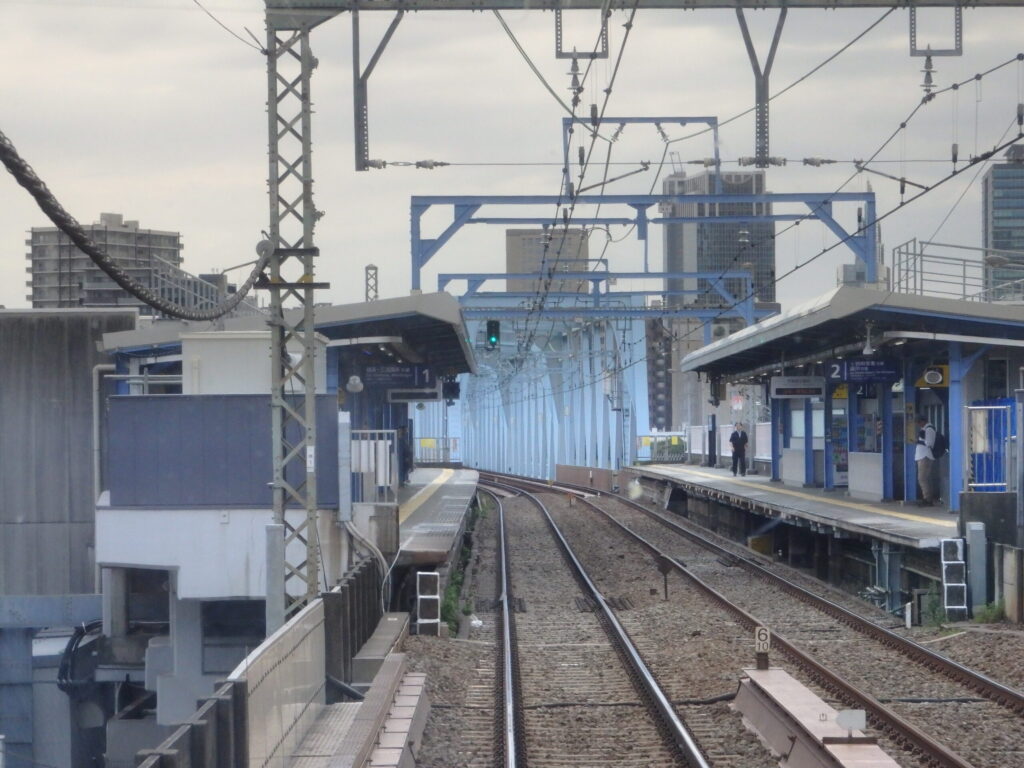 京急鶴見駅を出ると一気に地上レベルに下り、JR鶴見線の高架をくぐる。ここからはJR線との並走区間。
