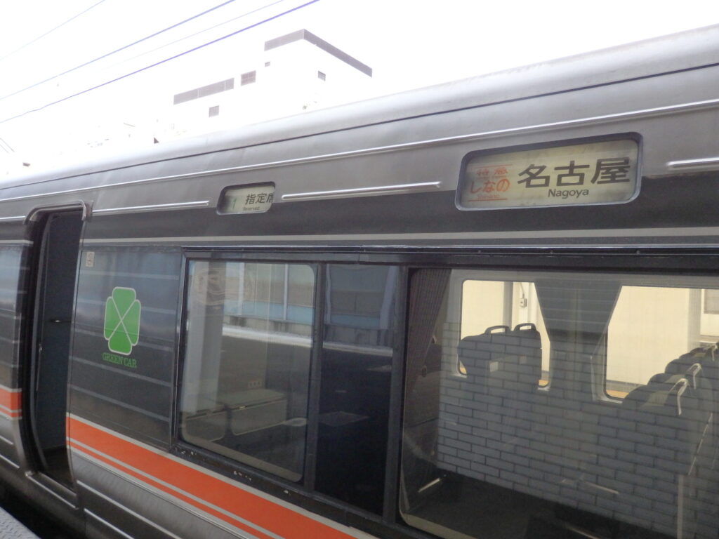 今回購入したのは自由席。何両編成だろうと特急しなのの自由席は名古屋方の2両(今回は9・10号車)なので、ここから頑張って先頭の方まで歩く。