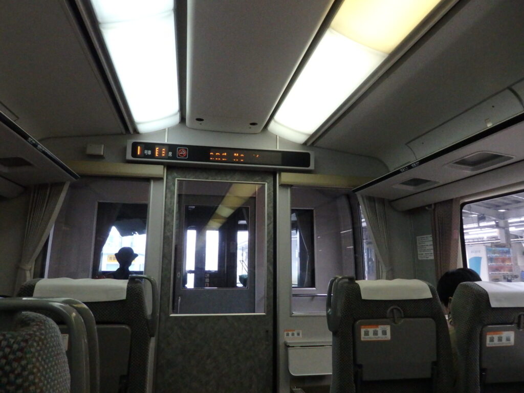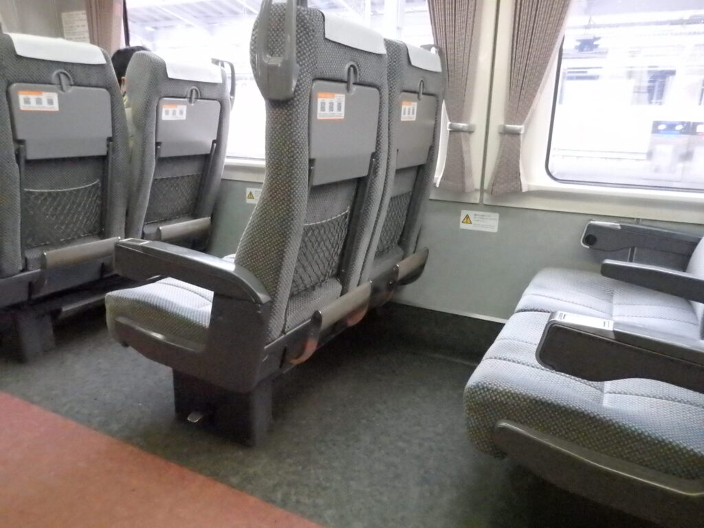 車内に潜入。座席は窓側席に余裕があり、自由席でも問題ないほどの混み具合。