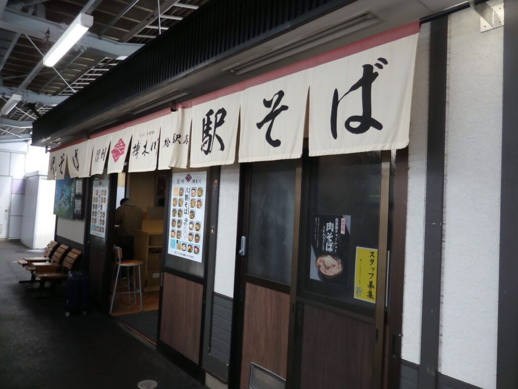 朝ごはんを食べていなかったので、ここでホームの駅そば。乗り換え時間が少ししかなかったので、ホームにスタンドの蕎麦屋があるのはありがたい。