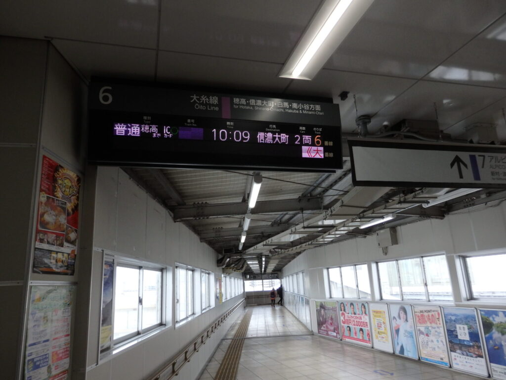 食べたら、大糸線のホームへ向かう。穂高までICカードが使えるという表示がある。