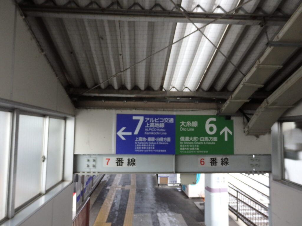 大糸線のホームは、アルピコ交通と向かい合わせ。