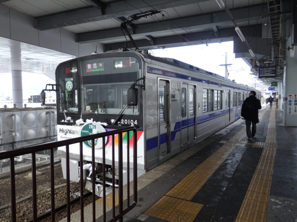 こちらがアルピコ交通の車両。元々は、東武伊勢崎線の車両。日比谷線直通に使っていた20000系のようだ。